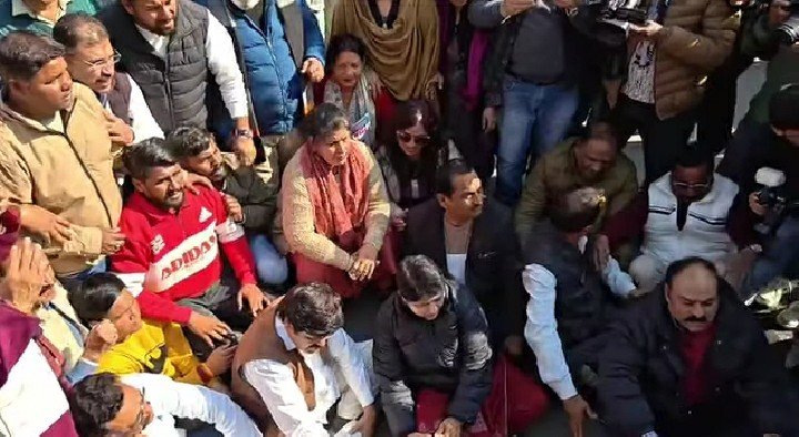 आज पुलिस मुख्यालय देहरादून पहुच कर नौजवान किसान सुखवंत सिंह आत्महत्या मामले में सुभाष रोड पर कार्यकर्ताओं ने भारी दलबल के साथ किसान सुखवंत सिंह मामले में निर्णायक फैसला न आने से नाराज प्रतिपक्ष नेताओं ने प्रदर्शन किया! लेकिन भारी पुलिस दल ने उन्हें वेरिकेटिग लगाकर रोक दिया गया, जिससे कांग्रेस नेता सड़क पर धरने पर ही बैठ गए नेता प्रतिपक्ष आर्य ने कहा कि उत्तराखंड की कानून व्यवस्था पूरी तरह फेल हो चुकी चाहे वह अंकिता कांड हो या किसान सुखवंत सिंह हत्याकांड! सरकार और पुलिस प्रशासन संदेह के घेरे में है जब आरोपी पुलिस वाले हैं तो पुलिस निष्पक्ष जांच कैसे कर सकती है काशीपुर पैगा के नौजवान किसान सुखवंत सिंह ने पुलिस के दबाव में आकर आत्महत्या जैसे जघन्य अपराध को अंजाम दिया है मौत से पहले पुलिस तंत्र पर जो आरोप लगाए गये हैं उसके शब्दों ने सबके दिलों को झंझोर कर रख दिया उसके इस कदम से उसके अंदर कितनी पीड़ा और दर्द रहा होगा उसने इस न्याय व्यवस्था से परेशान होकर मौत को गले लगाना पड़ा?