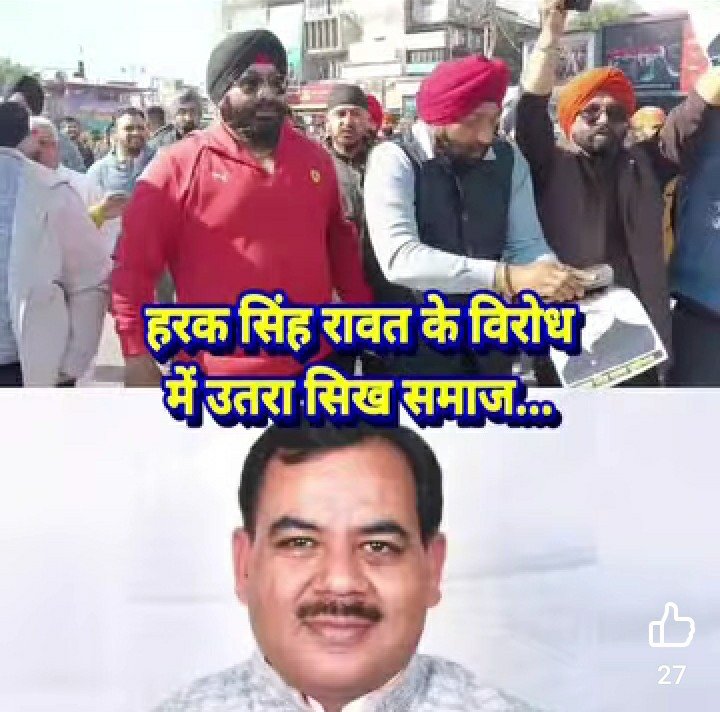 कांग्रेस पार्टी के कैबिनेट मंत्री हरक सिंह रावत के विवादित बयान से भड़का सिख समुदाय*_*रामनगर*/ देहरादून में बार एसोसिएशन के आंदोलन के समर्थन में पहुंचे हरक सिंह रावत ने *सरदार जी 12:00 बज गए* बयान पर सिख समुदाय में आक्रोश फैल गया, प्रदेश में जगह-जगह सिख समुदाय ने प्रदर्शन कर पुतले फूककर नारेबाजी की, सिखों के खिलाफ बयान बाजी पर विभिन्न संगठनो ने लाल कुआं, काशीपुर सितारगंज, किच्छा, हल्द्वानी जैसे शहरों में हरकसिह रावत का पुतला दहन कर विरोध जताया?सिख समुदाय के खिलाफ की गई आपत्तिजनक टिप्पणी को लेकर क्षेत्र में विरोध होने लगा,