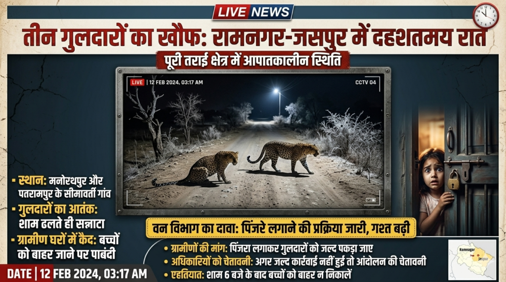उत्तराखंड के जसपुर क्षेत्र के पतरामपुर, मनोरथपुर और आसपास के गांवों में इन दिनों तीन गुलदारों (तेंदुओं) की मौजूदगी ने दहशत का माहौल पैदा कर दिया है। हालात इतने गंभीर हो चुके हैं कि सूरज ढलते ही ग्रामीण अपने घरों में कैद होने को मजबूर हो जाते हैं।
