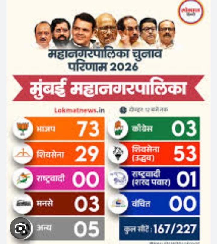 👉 बीएमसी के अलावा कई प्रमुख निगमों में जैसे नागपुर, पुणे, ठाणे, नवी मुंबई, जालना आदि में भी बीजेपी-मयायुति गठबंधन ने जोरदार प्रदर्शन किया। �