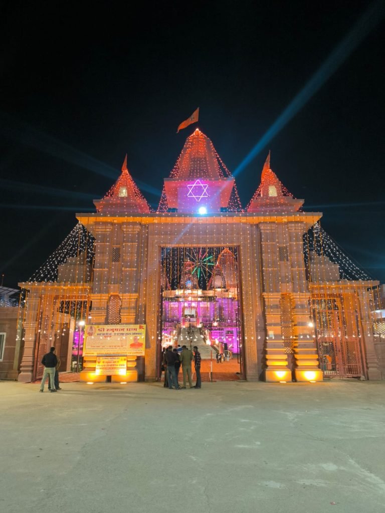भजनों की मधुर आवाज से लोग झूम उठे हजारों की संख्या में पहुंचे श्रद्धालुओं ने *सब कुछ मिला है, मेहरबानियां का तेरा यह सिलसिला है* जैसे अनेक भजनों से दर्शकों के मन को मोह लिया! पूज्य आचार्य विजय जी ने अपने उद्बोबोधन मैं हनुमान जी की इस पावन धर्मस्थली का वर्णन करते हुए कहा कि 17 नवंबर 2011 को श्री हनुमान धाम की नींव रखी गई थी इस चमत्कारी हनुमान धाम का